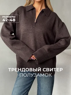 Теплый шоколадный свитер с манжетами и воротом в рубчик