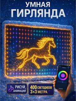 Умная штора гирлянда RGB 200 на 200 см 400 LED