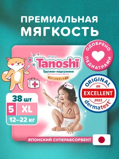 Подгузники трусики 5 XL (12-22 кг) для детей Таноши, 38 шт