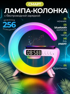 Смарт лампа-колонка с часами, будильником и зарядкой