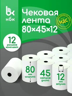 Чековая лента 80 мм 45 метров кассовая термо 12 роликов