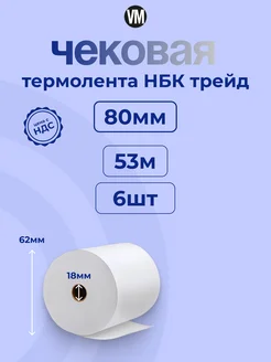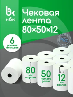 Чековая лента 80 мм 50 метров кассовая термо 6 роликов