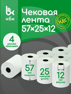 Чековая лента 57 мм 25 метров кассовая термо 4 ролика