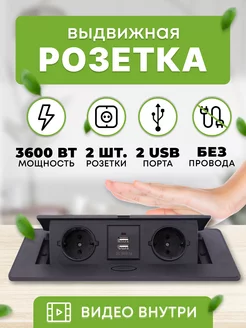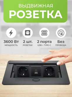 Встраиваемая выдвижная розетка в столешницу с USB и TYPE-C