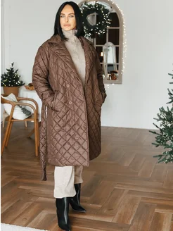 Куртка плащ стеганая демисезонная коричневая