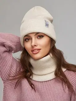 Зимняя шапка бини со снудом Вязаный комплект