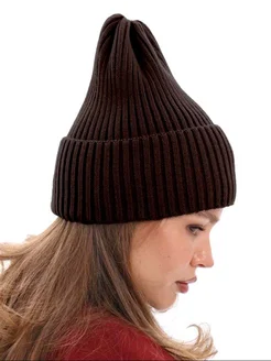 Шапка осенняя-весенняя бини с подворотом вязаная