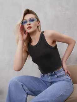Майка кроп топ в рубчик варенка серая