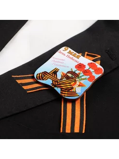 Значок деревянный с лентой "День Победы!" гвоздики