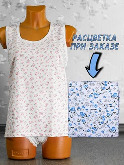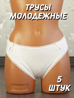Трусы женские кулирка цветочек высокие хлопок 3 штуки
