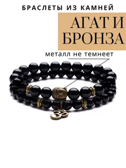 Браслет двойной агат черный