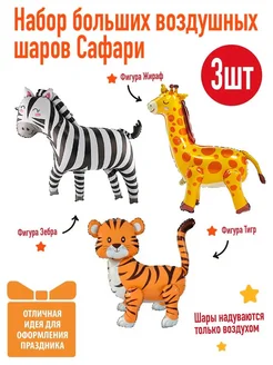 Воздушные шары животные Сафари, набор 3шт