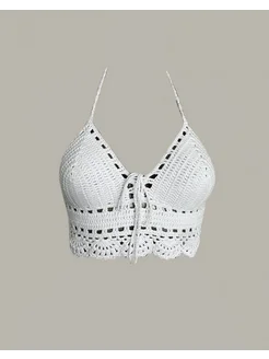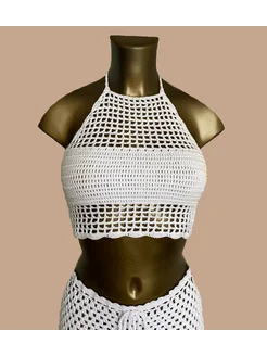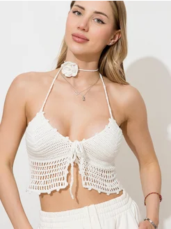 Топ халтер вязаный кроше с завязками