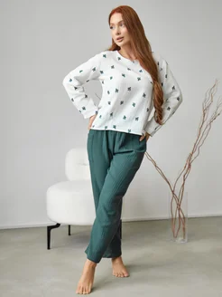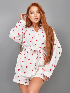 Муслиновая пижама с шортами и кимоно костюм домашний