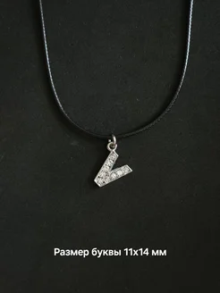Кулон с буквой V со стразами