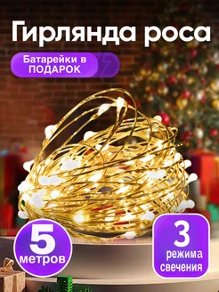 Новогодняя гирлянда роса 5 метров 5 штук цветная