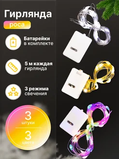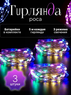 Гирлянда роса 5 метра 3 штуки разноцветная беспроводная