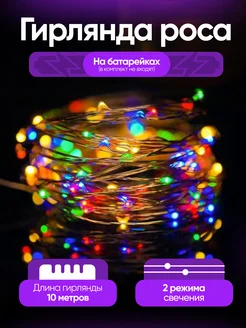Гирлянда роса на батарейках 5 м разноцветная новогодняя