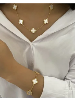 Комплект бижутерии браслет и цепь ван клифф клевер