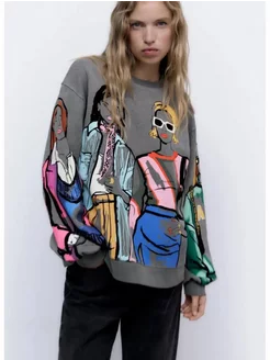 Свитшот с принтом,худи винтажный оверсайз аналог ZARA