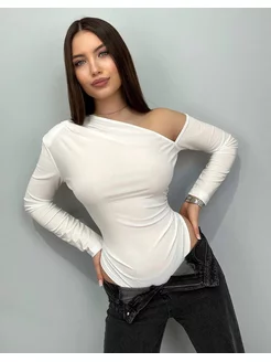Боди на одно плечо с длинным рукавом прозрачное сетка