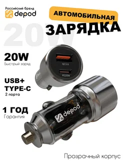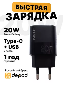 Блок питания USB + Type-С, быстрая зарядка 20W