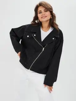 Джинсовая куртка косуха на молнии оверсайз