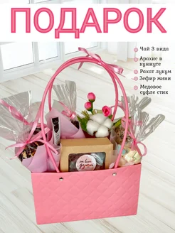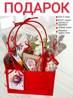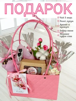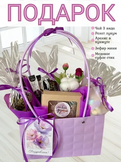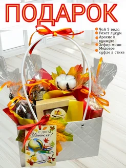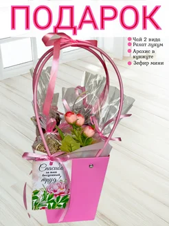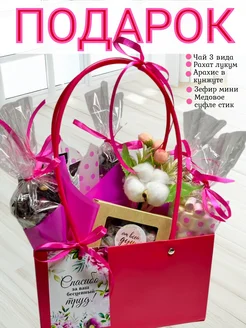 Букет учителю воспитателю в сумочке набор чая и сладостей