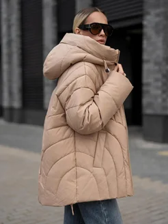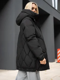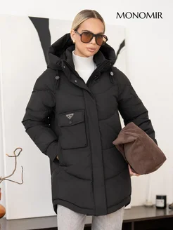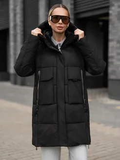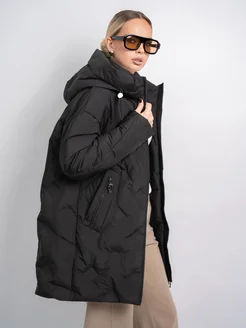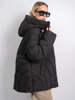 Куртка зимняя оверсайз с капюшоном удлиненная