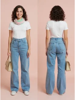 Джинсы широкие прямые с высокой посадкой турецкий хлопок