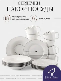 Набор посуды на 6 персон с кружками, 18 пр. Сердечки
