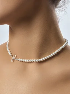 Чокер бусы в корейском стиле из жемчуга с бантом