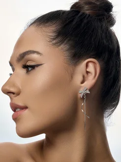 Серьги длинные с бантиком