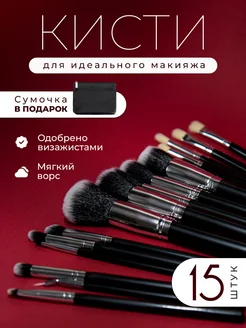 Кисти для макияжа лица 15 шт профессиональные в чехле