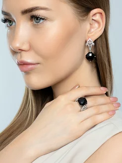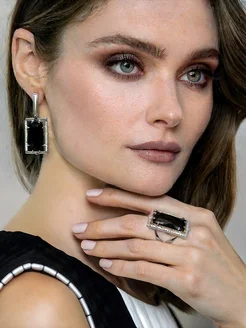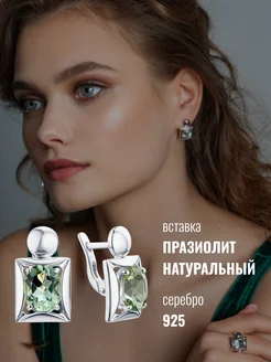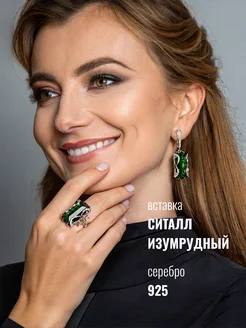 Серебряные серьги с изумрудными ситаллами и фианитами