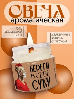 подарочная ароматическая свеча c надписью деревянным фитилем