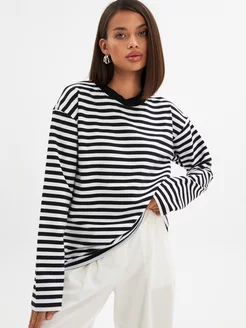 Лонгслив оверсайз в полоску с длинным рукавом