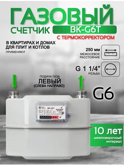 Счетчик газовый ВК-G6Т 250мм. (левый) (2025г.)
