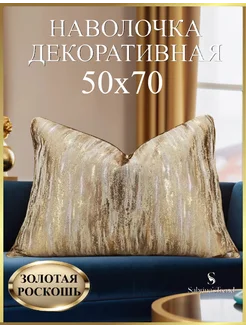 Наволочка декоративная 50х70 Золотая, чехол жаккард
