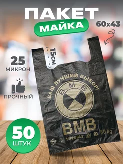 пакет майка большой черный с ручками 60 43 см 50 шт