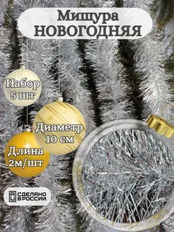 Мишура новогодняя белая "Жемчуг" 5 шт