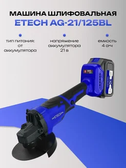 Машина шлифовальная угловая AG-21 125BL аккумуляторная