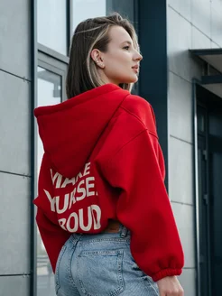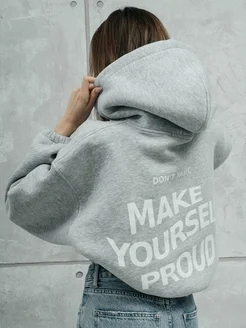 Зип худи оверсайз на молнии с начесом капюшоном принтом