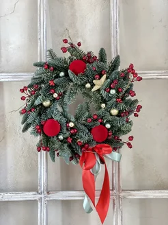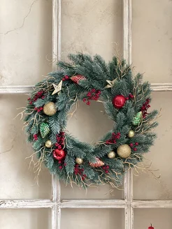 Новогодний венок на дверь ручной работы из искусственной ели