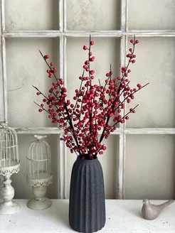 Искусственные ветки красные ягоды для декора 60 см