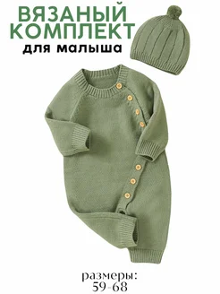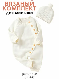 Вязаный комбинезон с шапочкой комплект для новорожденных