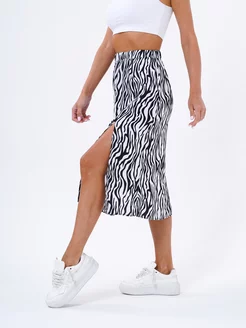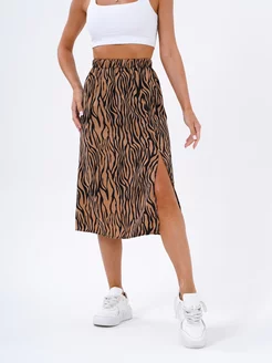 Юбка женская миди с разрезом зебра