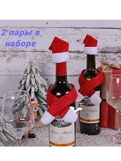 Новогоднее украшение колпак и шарф для бутылки 2 пары