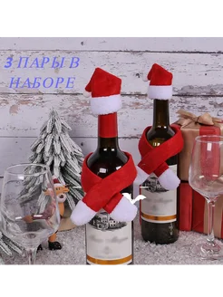 Новогоднее украшение колпак и шарф для бутылки 3 пары