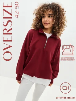 Свитшот женский бордовый полузамок на молнии оверсайз